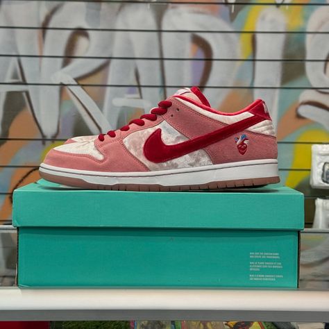 Celebrate love and skate culture with the Nike SB Dunk Low "StrangeLove." Designed in collaboration with StrangeLove Skateboards, this limited-edition sneaker features rich textures and romantic details, making it a standout piece in any collection. The upper is crafted from plush velvet and soft suede in shades of pink and red, creating a luxurious feel. The Nike SB Dunk Low "StrangeLove" in the regular box edition blends romantic design with skate-ready functionality — a must-have for sneakerheads and collectors alike.